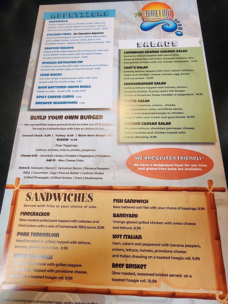 Taco seasoned hamburger or chicken on top of lettuce, tomatoes, onions, shredded cheddar, black bean and corn salsa, guacamole, sour cream, taco sauce, and our house-made queso.